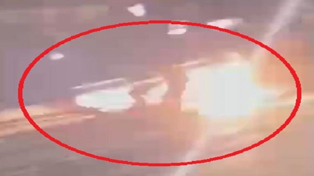 Momento que dopis policias militares ficam em apuros quando são lançados fogos de artifídio contra eles durante o protesto