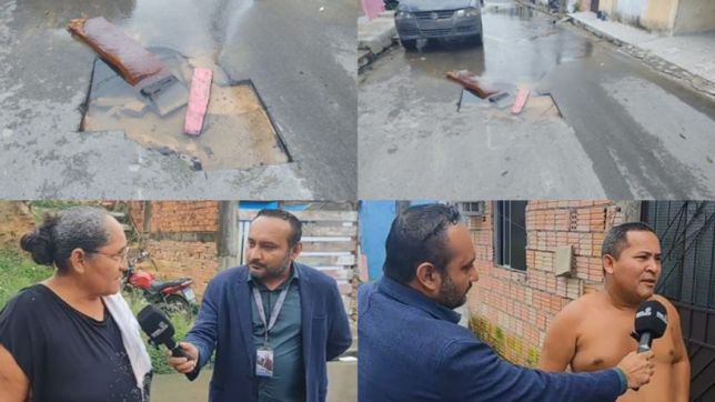Segundo informações, a empresa Águas de Manaus esteve no local tentando resolver o problema, abriram um buraco há mais de vinte dias atrás e o vazamento só piorou.