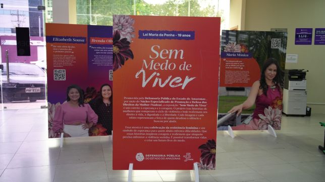 A mostra “Sem Medo de Viver”, da Defensoria Pública do Estado do Amazonas (DPE-AM), encerra sua etapa itinerante por diferentes espaços da cidade e, a partir desta segunda-feira (29), passa a integrar de forma definitiva o Núcleo Especializado de Promoção e Defesa dos Direitos da Mulher (Nudem), localizado na avenida André Araújo, nº 7, bairro Aleixo, Zona Centro-Sul da capital.