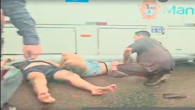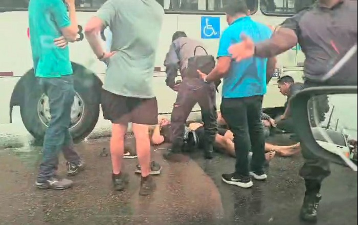 O homem e a mulher também foram parar embaixo do ônibus, mas foram retirados rapidamente por um grupo de pessoas que testemunhou o acidente.