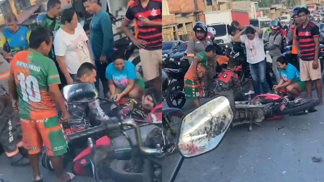 Um moto Uber e uma menina de 11 anos de idade, que estava sendo levada para a escola, na manhã desta segunda-feira, 28, sofreram um acidente ao passar por um quebra-molas na Rua Hibisco, bairro da Nova Vitória, Zona Leste de Manaus.