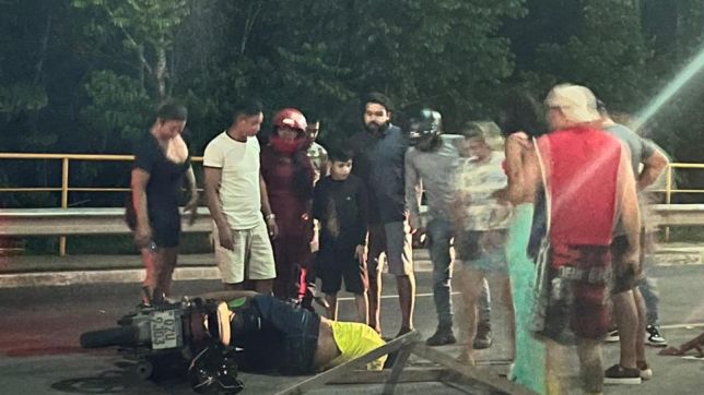 Acidente de moto na Avenida do Turismo em Manaus deixa duas pessoas feridas. VEJA VÍDEOS