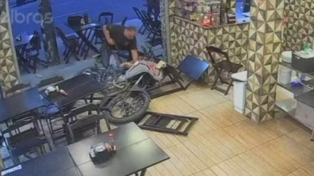 Adolescente baleado durante tentativa de assalto invade bar de moto em São Gonçalo. VEJA VÍDEO