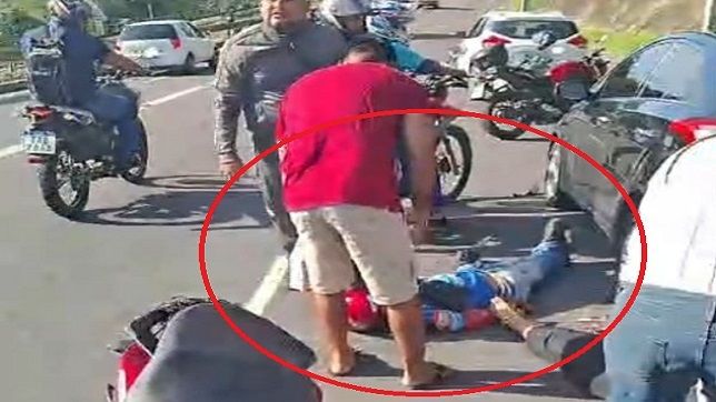 corpo do motociclista do local