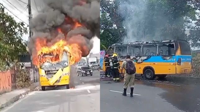 Micro-ônibus amarelinho incendeia na avenida Grande Circular, Zona Leste de Manaus. VEJA VÍDEOS