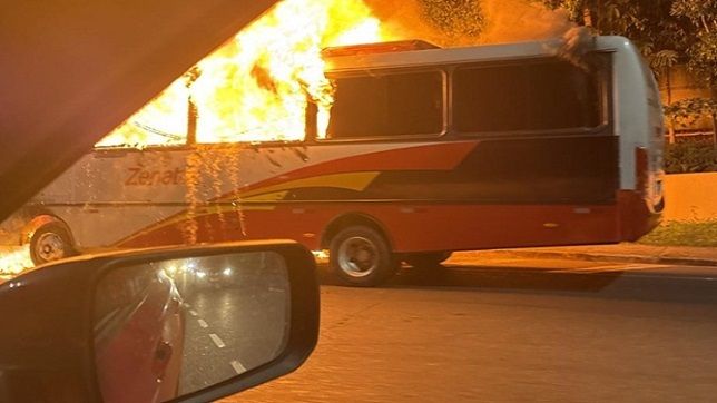 O veículo estava transportando funcionários de uma empresa do Distrito Industrial quando pegou fogo