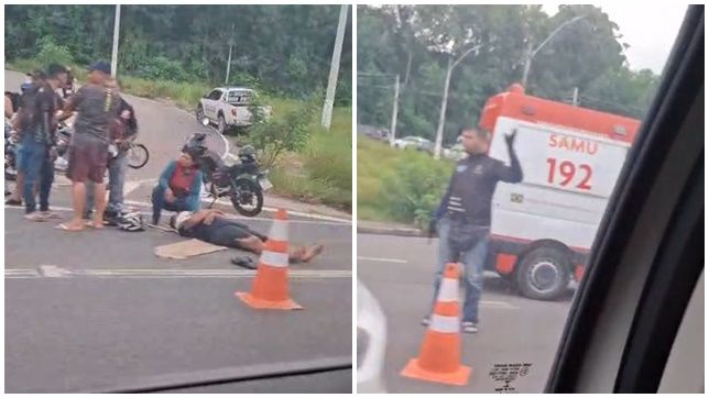 Um carro que não teve o modelo e a placa divulgados, atingiu uma motocicleta e arremessou o condutor na pista. O fato aconteceu por volta das 11h30, na Avenida das Torres, Zona Norte da capital amazonense.