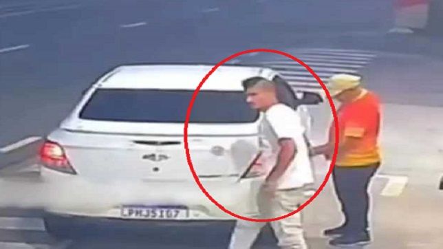 A câmera de segurança do estabelecimento filmou o momento em que o motorista desce do carro, conversa rapidamente com o funcionário que o atende e solicita o abastecimento de gasolina.
