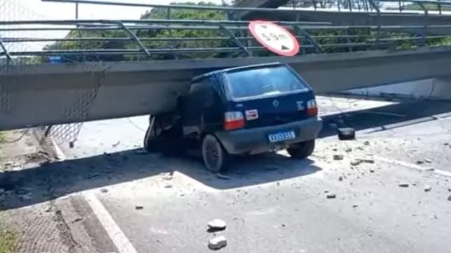 Passarela desaba sobre carro em rodovia no Rio de Janeiro