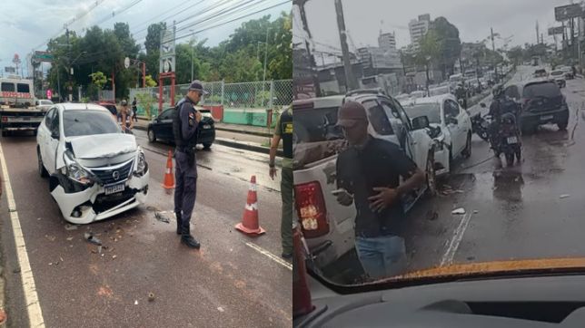 Depois da situação, o homem decidiu fugir e acabou entrando na contramão, o que resultou em um novo acidente já na avenida Djalma Batista. Com a força do impacto, o airbag do Nissan Versa foi acionado. O veículo permaneceu no local aguardando a chegada de um guincho para remoção.