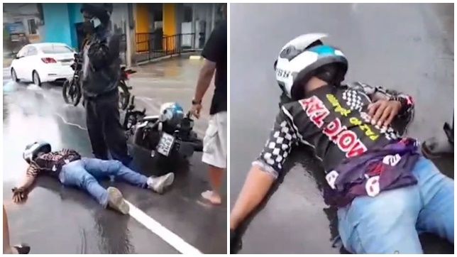 Após ser atingido pelo carro o mototaxista foi arremessado a vários metros e ficou caído na pista, consciente, mas não conseguia falar, podendo depois de bater a cabeça bruscamente no asfalto.