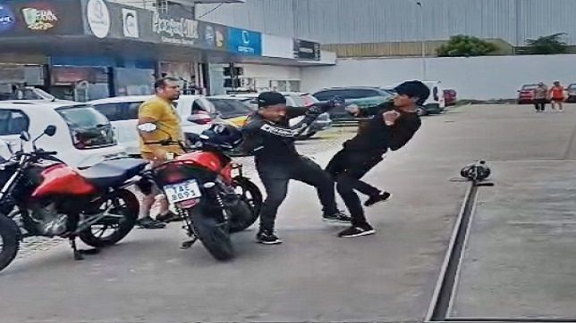 Uma das testemunhas filmou a troca de agressões físicas que durou vários minutos, iniciando com apenas dois mototaxistas, depois um terceiro, também se envolveu na confusão.