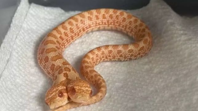 Cobra rara surpreende ao nascer com duas cabeças, que brigam entre si