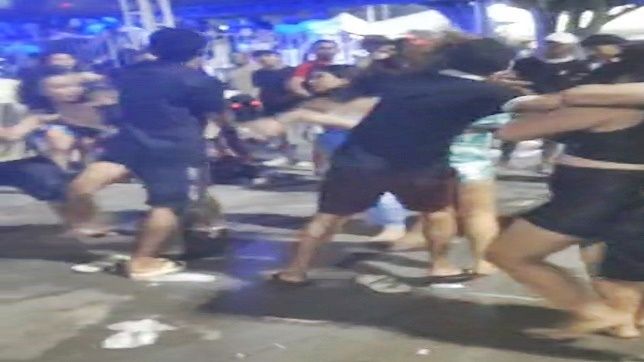 Dois vídeos publicados nas redes sociais mostram inicialmente, as mulheres, todas com sintomas de embriaguez alcoólica, trocando empurrões, tapas e dirigindo ofensas morais umas às outras.