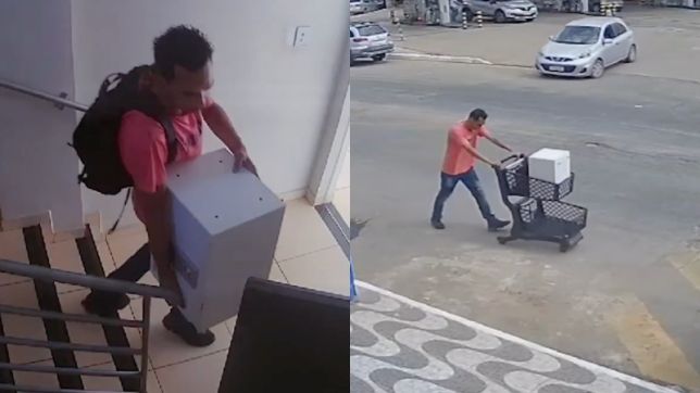 Bandido rouba cofre e foge usando carrinho de compras. VEJA VÍDEO