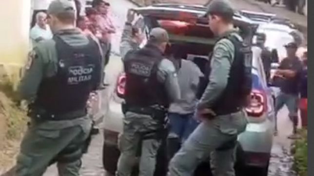 Nas imagens, é possível ver a Polícia Militar retirando a mulher de dentro de casa, enquanto moradores protestam. Sem ter a identidade divulgada, ela foi conduzida para evitar que fosse linchada.