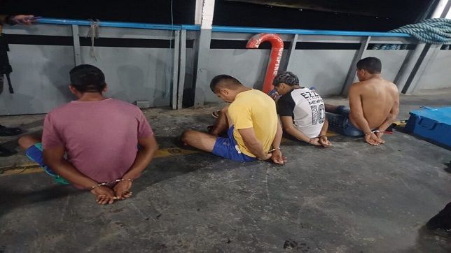 Os quatro tripulantes presos em flagrante durante a abordagem à embarcação que transportava a grande quantidade de drogas