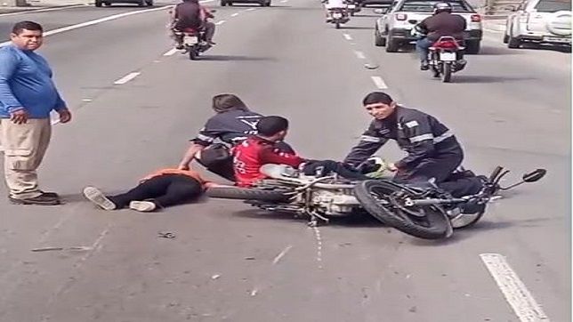Uma mulher sofreu fratura em uma das pernas e devido ao forte impacto de sua cabeça ao cair na pista, ela ficou em estado grave e foi levada para o Hospital e Pronto-Socorro 28 de Agosto.