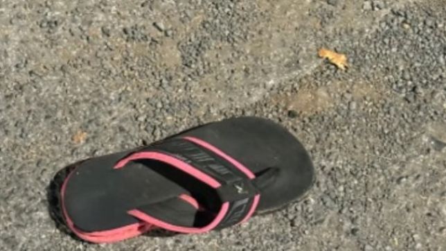 Na queda, o chinelo e a touca de cetim que ela usava foram parar no asfalto.