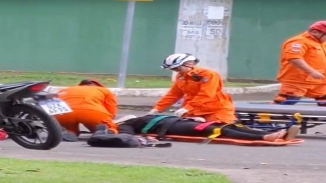 Ela foi arremessada bruscamente na pista e deu sorte logo em seguida, porque passava no local uma equipe de Resgate e Salvamento do Corpo de Bombeiros Militar do Amazonas (CBMAM), que parou e prestou socorro imediato à mesma.