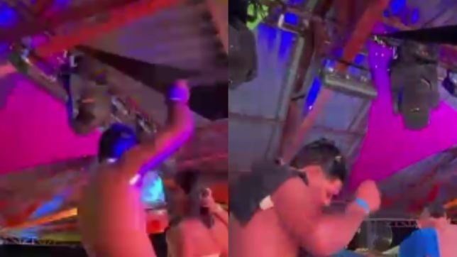 Nas gravações, uma mulher aparece no palco ao lado de dois homens, simulando atos de teor sexual enquanto o evento seguia com grande público presente. A cena foi registrada por frequentadores e rapidamente se espalhou pela internet, gerando comentários e críticas.