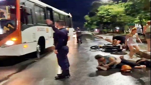 Dois acidente com queda de motociclistas aconteceram quase que simultaneamente nas proximidades do Terminal 1