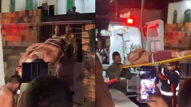 Os moradores da residência acionaram a Polícia Militar e o Serviço de Atendimento Móvel de Urgência (Samu), com o homem recebendo o primeiro atendimento antes de ser colocado na ambulância e levado para o hospital.