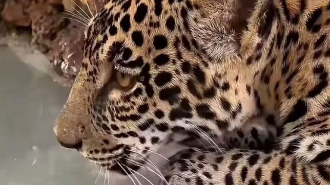 A onça-pintada chamada Golias, que foi criada ilegalmente como animal de estimação no município de Santo Antônio do Içá, no Amazonas, está em processo de reabilitação no Instituto NEX (No Extinction), em Corumbá de Goiás, a 80 quilômetros de Brasília.