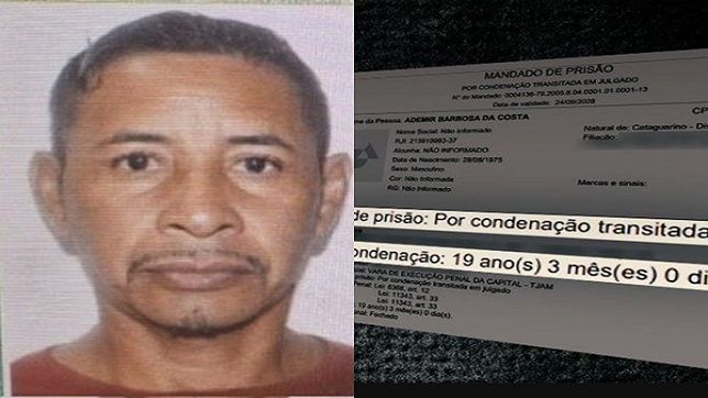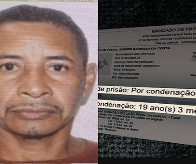 Ademir Barbosa já tinha uma condenação anterior e mandado de prisão expedido por tráfico de drogas