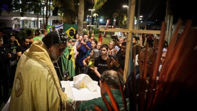 A celebração é conduzida pelo Padre Kelmon, que concorreu à presidência da República em 2022. O padre iniciou o ato pedindo misericórdia diante do público.