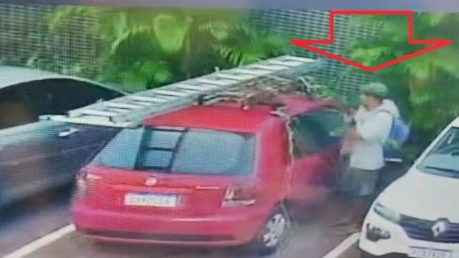 O crime de furto de uma escada de serviço, que estava no bagageiro ou rack, instalado no teto de um veículo, foi divulgado através de um vídeo, na manhã desta quarta-feira, 10, nas redes sociais.