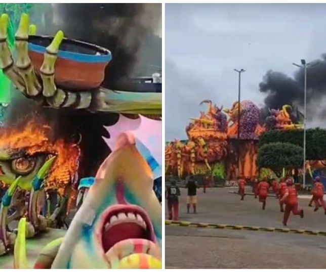 Momentos de muito pânico e correria aconteceu no final da manhã desta sexta-feira, 20, quando uma enorme alegoria do Boi Caprichoso, pegou fogo em Parintins, município distante 369 quilômetros de Manaus.