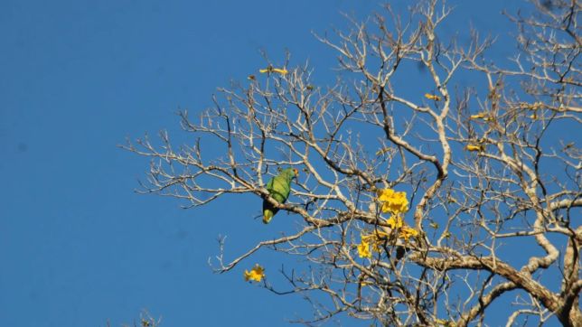 Os hábitos alimentares do papagaio-chauá (Amazona rhodocorytha) foram determinantes para localizar os ipês (Handroanthus riodocensis). A equipe acompanhava um grupo de 34 indivíduos, quando observaram os papagaios pousados e se alimentando nas árvores, que estavam em período de floração.