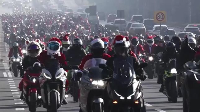 Centenas de Papais Noéis em motocicletas desfilaram pelas ruas de Sófia, capital da Bulgária, neste sábado (20), enquanto a cidade se prepara para a contagem regressiva para as épocas festivas.