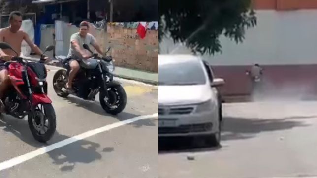 Assaltantes são perseguidos e atropelados por comerciante logo após roubo. VEJA VÍDEO