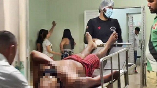 O homem baleado com cinco tiros recebe atendimento de emergência na unidade hospitalar José Mendes