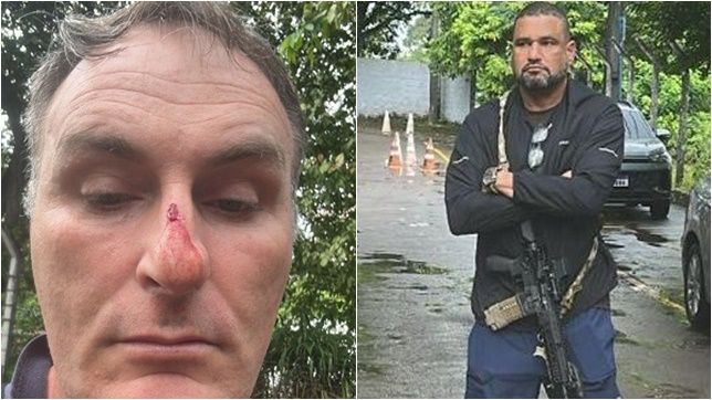 Ainda na narrativa do policial militar ele afirma que no momento que o celular foi quebrado por um soco desferido, ele também foi atingido no rosto e ficou com um corte no nariz, aparecendo inclusive em uma fotografia que mostra o sangramento.