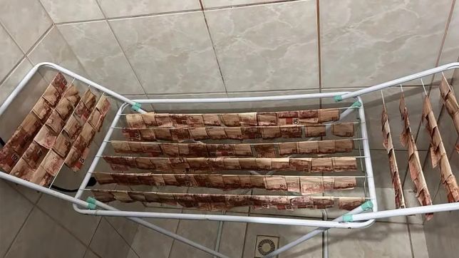 Durante as buscas em Joinville, os policiais encontraram o dinheiro espalhado no varal, na tentativa de secagem. A quantia estava úmida e parte das notas apresentava manchas de mofo.