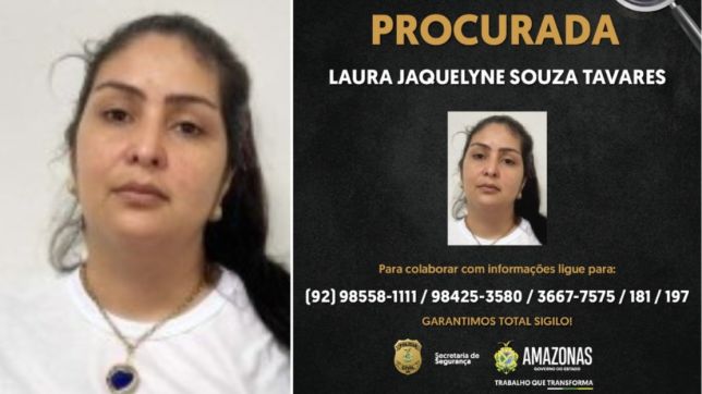 A Polícia Civil do Amazonas (PC-AM), por meio do 11º Distrito Integrado de Polícia (DIP), divulga a imagem de Laura Jaquelyne Souza Tavares, de 41 anos, investigada pelo crime de estelionato praticado enquanto atuava como vendedora de uma concessionária de veículos no bairro Coroado, Zona Leste de Manaus.