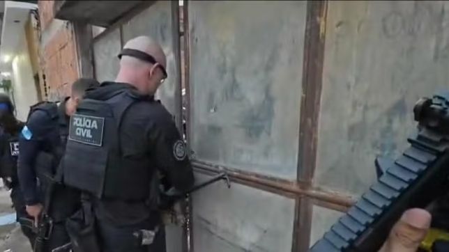 Policiais civis num local alvo da operação