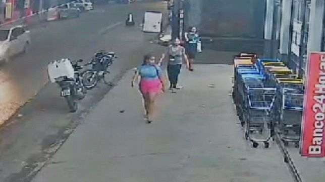 As mulheres aparecem em um dos vídeos chegando ao supermercado na avenida principal