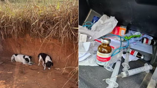 Quando foi flagrado, os suspeitos estavam uniformizados e usando uma viatura oficial, informou a Polícia Civil. Eles estavam colocando os cachorros no automóvel. Foram encontrados com o grupo seringas e frascos de sedativos