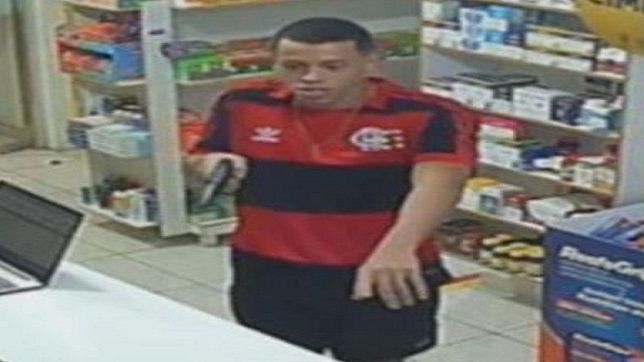 Um dos assaltos em que o homem aparece de arma em punho e ameaçando funcionários de uma drogaria