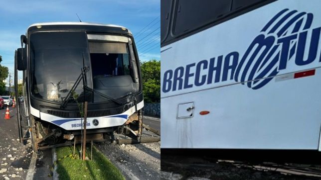 Carenagem dianteira do ônibus foi destruída e