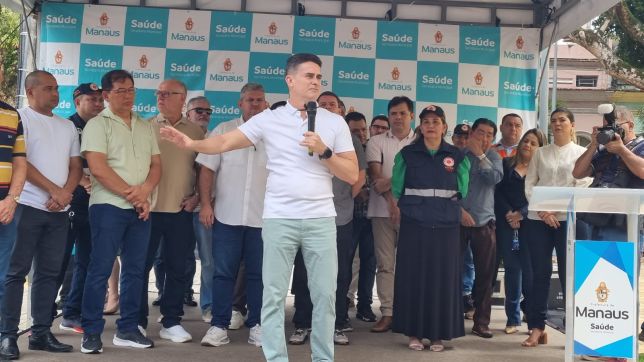 O prefeito de Manaus, David Almeida, entrega, nesta quinta-feira, 27/2, 15 novas ambulâncias para compor a frota do Serviço Móvel de Atendimento de Urgência (Samu Manaus). A cerimônia está sendo realizada no estacionamento do mirante Lúcia Almeida, na avenida 7 de Setembro, nº 8, no centro da cidade.