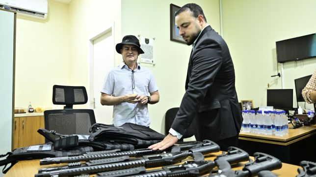 O prefeito de Manaus, David Almeida, esteve na sede da Secretaria Municipal de Segurança Pública e Defesa Social (Semseg), nesta terça-feira, 24/6, para acompanhar a entrega de novos armamentos e equipamentos destinados à Guarda Municipal. A nova aquisição inclui 30 espingardas calibre 12 e 350 coletes balísticos de última geração, fortalecendo a atuação da corporação no patrulhamento e na segurança preventiva da cidade.