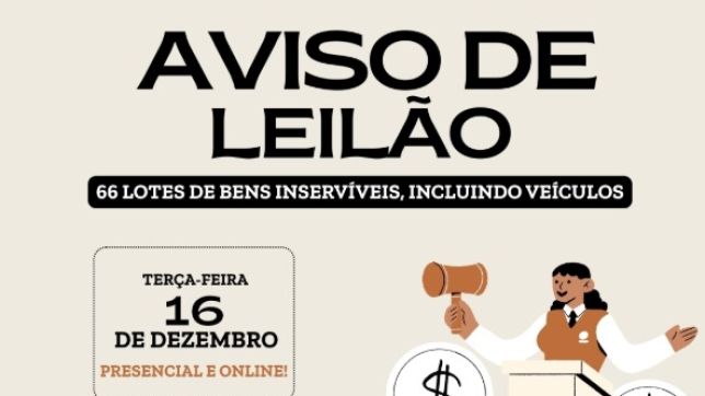 O leilão foi organizado pela Divisão de Patrimônio (Dpat), da Secretaria Municipal de Administração e Gestão (Semad). Com a venda, a previsão inicial de arrecadação é de R$ 359 mil. O edital pode ser consultado no Diário Oficial do Município (DOM) do dia 19/11.