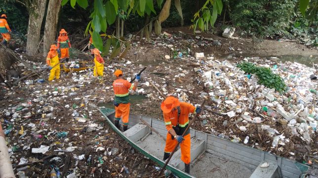 Nesta quarta-feira, 19/3, apesar da instabilidade do tempo, com pancadas de chuva em diversos momentos do dia, os garis não paralisaram as atividades e seguiram retirando toneladas de lixo do igarapé. Os trabalhadores entraram na água utilizando canoas e instrumentos manuais para remover os resíduos acumulados, que incluem plásticos, móveis velhos, garrafas PET e outros materiais descartados de forma irregular.