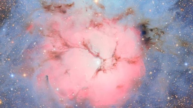 Logo na estreia, uma composição que une 678 fotos tiradas ao longo de 7 horas mostra as nebulosas Trífida e Lagoa, na Via Láctea. São regiões vibrantes e caóticas onde estrelas bebês estão em plena formação, a milhares de anos-luz da Terra.