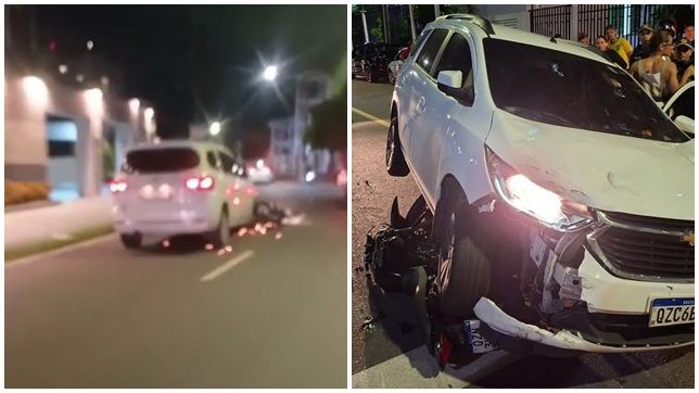 Passavam das 20h quando o acidente aconteceu e vídeos impressionantes publicados nas redes sociais, por outros motoristas e entregadores de delivery, mostram as imagens do carro dirigido pela procuradora, um Chevrolet Spin, branco, placa QZC 6B56, arrastando a motocicleta e produzindo faíscas durante a fuga.